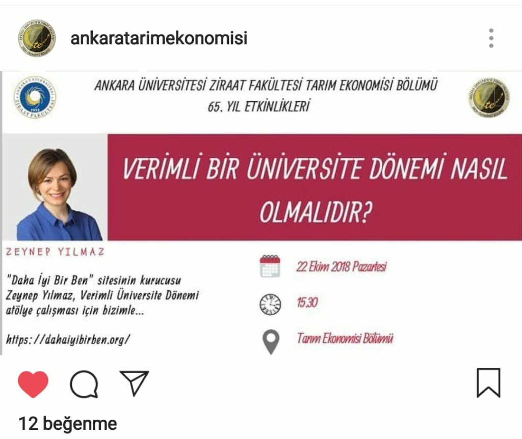 Ankara Üniversitesi Ziraat Fakültesi Tarım Ekonomisi Bölümü’nün 65. Yıl Etkinlikleri kapsamında “Verimli Bir Üniversite Dönemi Nasıl Olmalıdır?” sunumunu gerçekleştirmiştik.